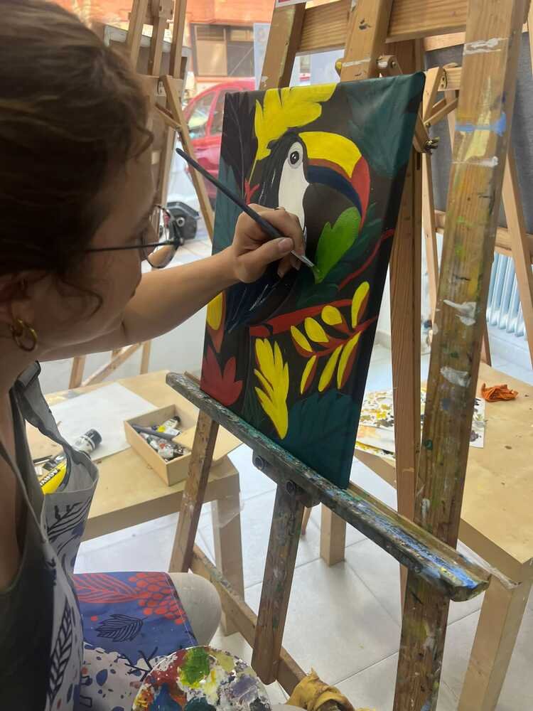 Publicado en Patricia MenaTrustindex verifica que la fuente original de la reseña sea Google. Escuela con mucho encanto! Perfecta para alquilar e impartir talleres. Tienen mucha oferta de formaciones entre semana y los findes. Muy recomendable!Publicado en teresa gonzalezTrustindex verifica que la fuente original de la reseña sea Google. Muy recomendable!!! Hicimos un taller con Laura y nos hizo pasar una tarde muy entretenida. Da igual que sepas o no pintar ella te da todos los pasos para que te salga un cuadro de diez!! Además tienen talleres con diferentes técnicas de pintura así que repetiremos sin duda!!Publicado en Raquel Martín OlaizTrustindex verifica que la fuente original de la reseña sea Google. Estupendo ambiente en el taller del pasado viernes. Pasamos un rato muy agradable y divertido poniendo color al gatuco que previamente dibujamos. Quedó un estilo pop art bastante curioso. Para repetir 👌🏼Publicado en MartaTrustindex verifica que la fuente original de la reseña sea Google. Regale a mi pareja un taller porque siempre le ha encantado pintar y si me descuido se queda allí a dormir!! Volvió encantado!!! Con muchísimas ganas de repetir!!! Laura encantadora y pasó un rato espectacular. Totalmente recomendable.Publicado en Gey SilvaTrustindex verifica que la fuente original de la reseña sea Google. Recomiendo al 100%. Yo, que nunca antes había pintado en mi vida, al final del taller tenía un precioso cuadro de un gatito pop. Fue genial. Me lo pasé muy bien. La profe es muy simpática, atenta y muy profesional. El pack completo: arte, risa, aprendizaje, aumenta tu autoestima. Estoy deseando el próximo taller.Publicado en Gema Lagunilla InfanteTrustindex verifica que la fuente original de la reseña sea Google. Experiencia súper divertida y 100% recomendable para sacar al artista interior! He ido a uno de los talleres y han sido un rato de reconexión lleno de color! Seguro que repito :)Publicado en saray aguadoTrustindex verifica que la fuente original de la reseña sea Google. Estuvo genial!! Una experiencia súper recomendable! Sin saber pintar pude hacer un cuadro decente con la ayuda y paciencia de Laura! Sin duda 100% recomendable para hacer con grupo de amigos o familia!Publicado en Rebeca MadrugaTrustindex verifica que la fuente original de la reseña sea Google. Decidí regalarle un taller de pintura a mi madre y a mi abuela para disfrutar las tres de un ratito de ocio diferente y sin duda fue un acierto. Laura guía la clase con una cercanía que te hace sentir muy cómoda, y su talento consigue que, aunque no sepas nada de pintura, consigas terminar tu cuadro y que te quede un recuerdo precioso. A las tres nos gustó muchísimo la experiencia. Repetiré seguro.Publicado en beatriz alonsoTrustindex verifica que la fuente original de la reseña sea Google. Salí encantada del taller 🩷 me encantó la profesionalidad que tiene Laura , todo nos lo indicó a la perfección y nos quedó a todos una verdadera obra de arte 🖼️Publicado en Laura López GarcíaTrustindex verifica que la fuente original de la reseña sea Google. Lo pasamos superbien! Aunque parezca difícil te va guiando y el resultado siempre es bueno 😊 Este es mi segundo cuadro